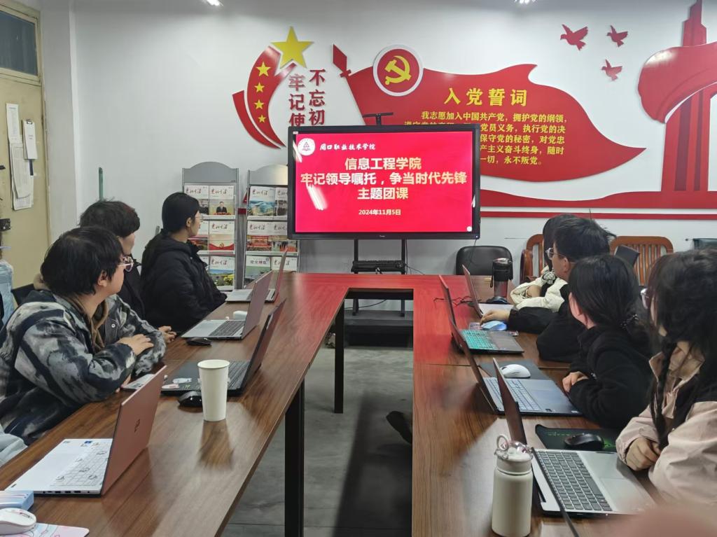 为了推动青少年关注社会发展,加强共青团组织内的交流与合作,激励青年一代不忘初心,牢记使命,争做新时代的有为青年。信息工程学院于2025年11月3日在6140教室开展“牢记领导嘱咐,争当时代少年”主题团课,全体入团积极分子参加此次活动。