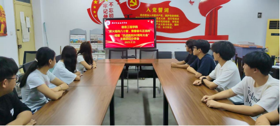 为引导青年团员感悟团组织八十年来的光辉历程,传承红色基因与奋斗精神,2025年9月15日,信息工程学院在6140教室成功举办“薪火传承八十载,青春奋斗正当时”主题团日分享会。24级入团积极分子齐聚一堂,在庄重而热烈的氛围中接受思想洗礼,凝聚青春力量。