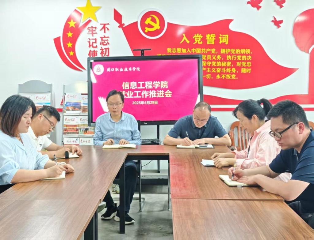 为深入贯彻落实国家关于高校毕业生就业工作的相关精神,扎实推进 2025届毕业生就业工作,信息工程学院于2025年4月29日在6140党员活动室召开了毕业生就业工作推进会。信息工程学院学管副院长楚书来、就业指导员王瑞雅及各班辅导员们参加了此次会议。