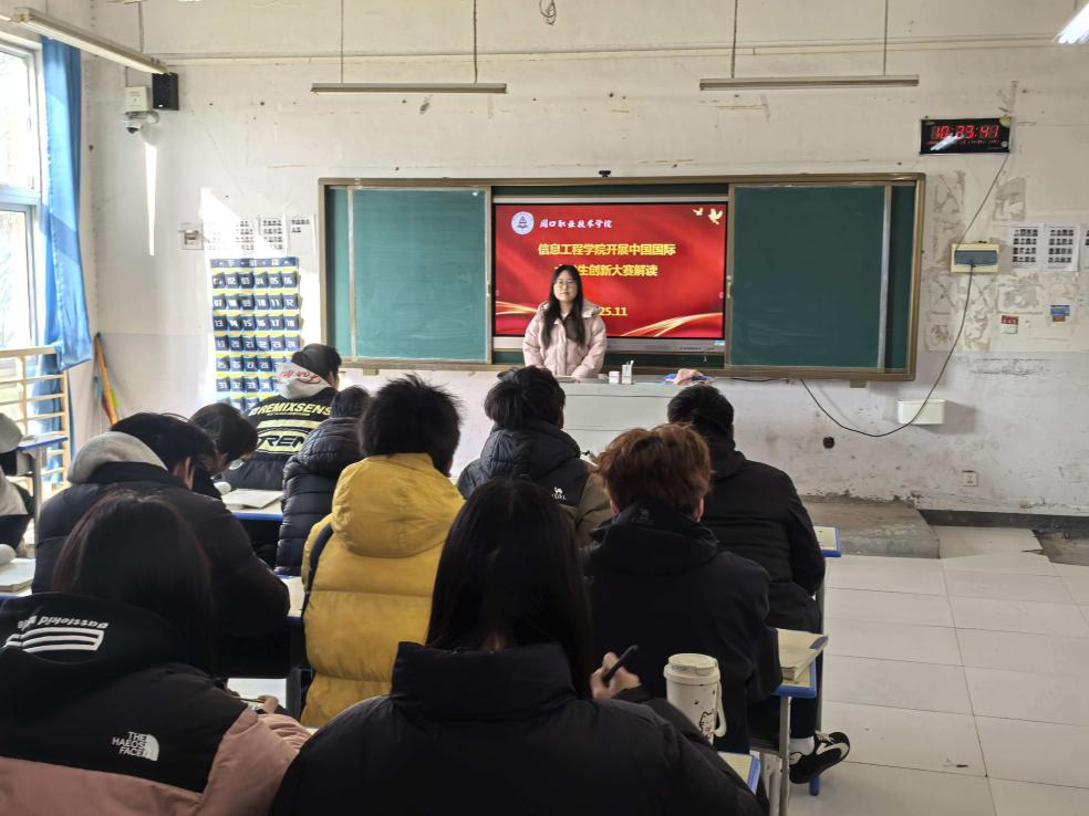 为助力学子备战中国国际大学生创新大赛,明晰赛事规则与备赛要点,2025年11月,开展信息工程学院中国国际大学生创新大赛专题解读活动,邀请信息工程学院国赛铜奖获得选手姬玉鹏进行解读,学院学生踊跃参与。